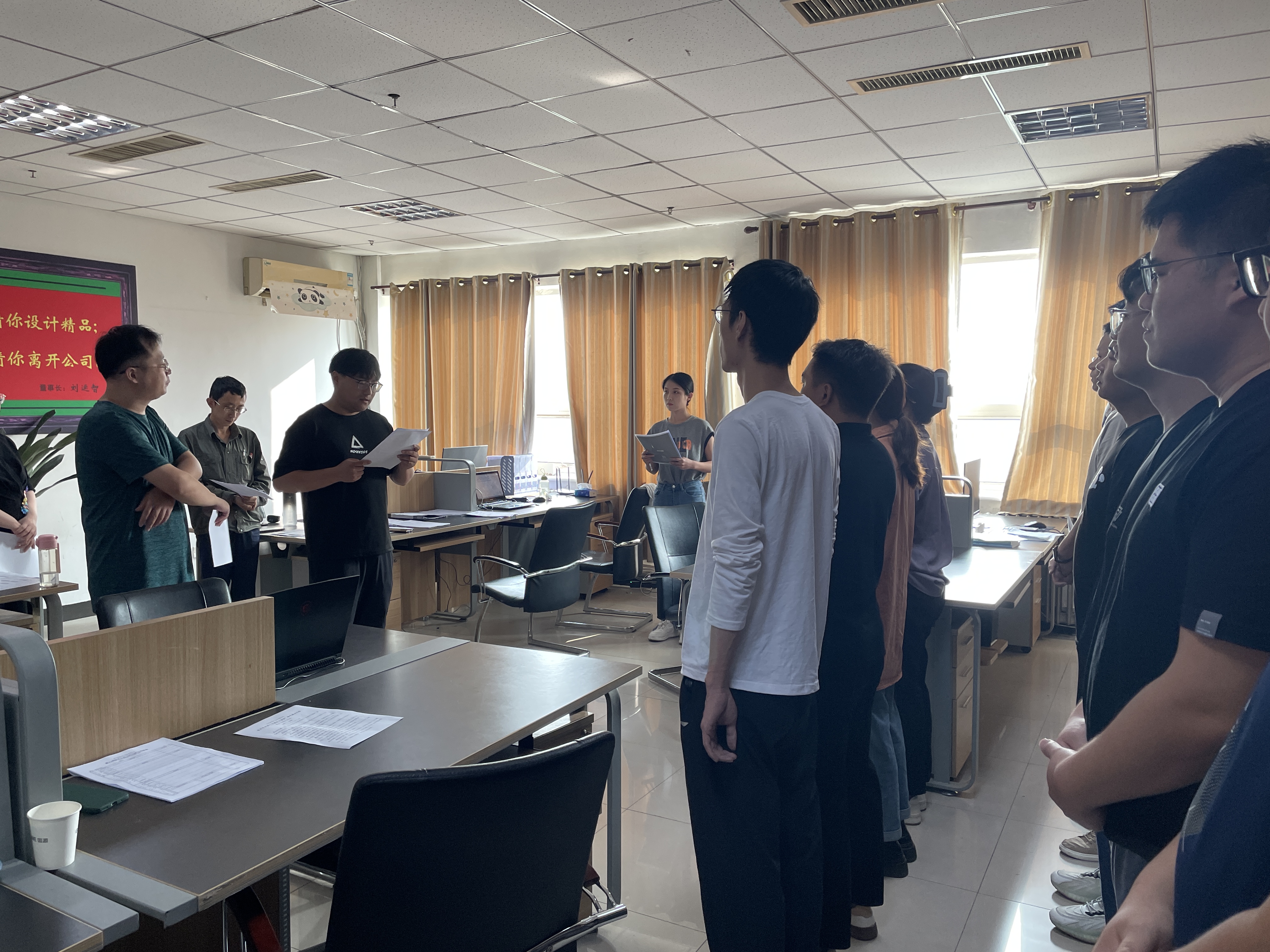 明早晨會李帥同志報告7日實操任務完成成果,周兆帆同志學習《李帥日清工作法》談親身感受。