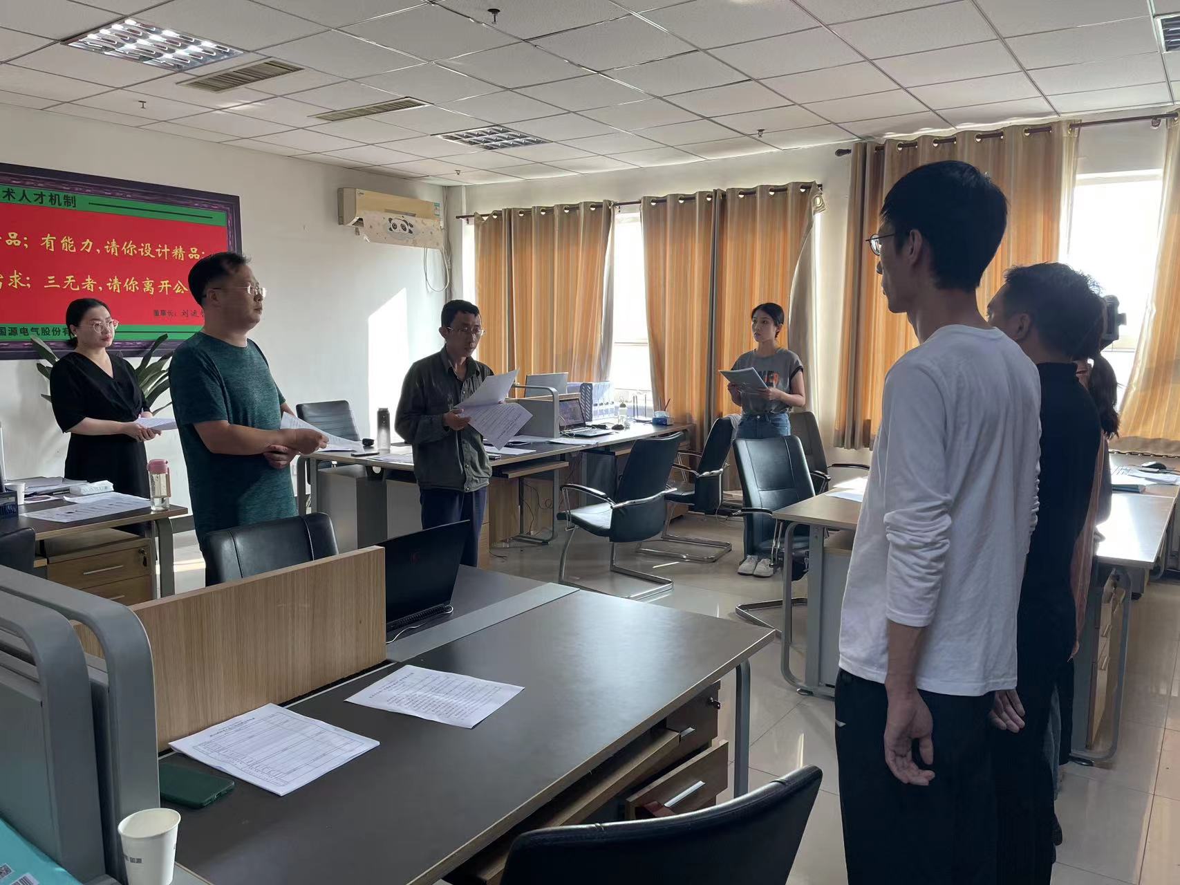負責技術開發部全面工作的倪立顯同志對兩位“實操技術員演講”模式進行認真總結和快速復制推廣,并就今日部門實操工作進行量化和一對一的安排。